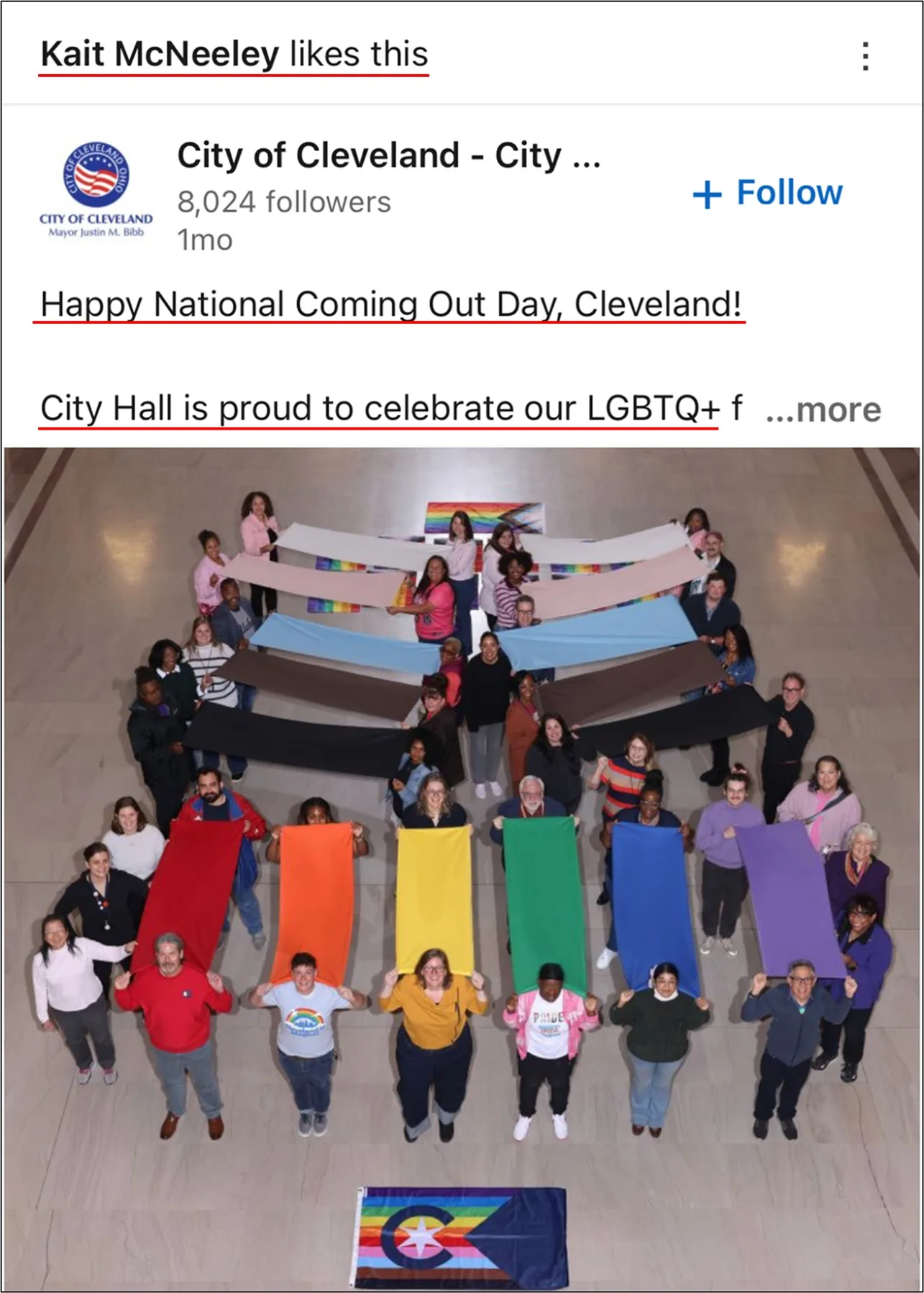 A year ago, McNeeley “loved” a post from the coalition calling upon followers to “Join the LGBT Center of Greater Cleveland” at their “health” event, which specifically indicated “access to gender affirming care” as one of its provisions.