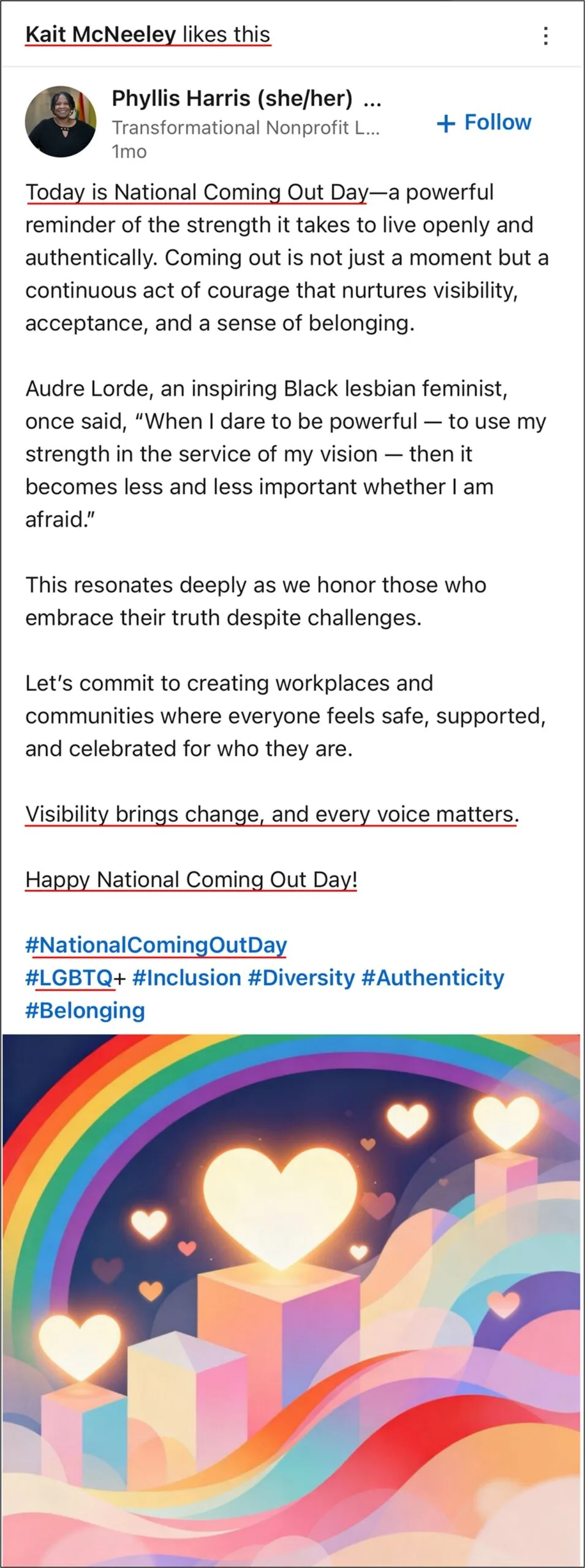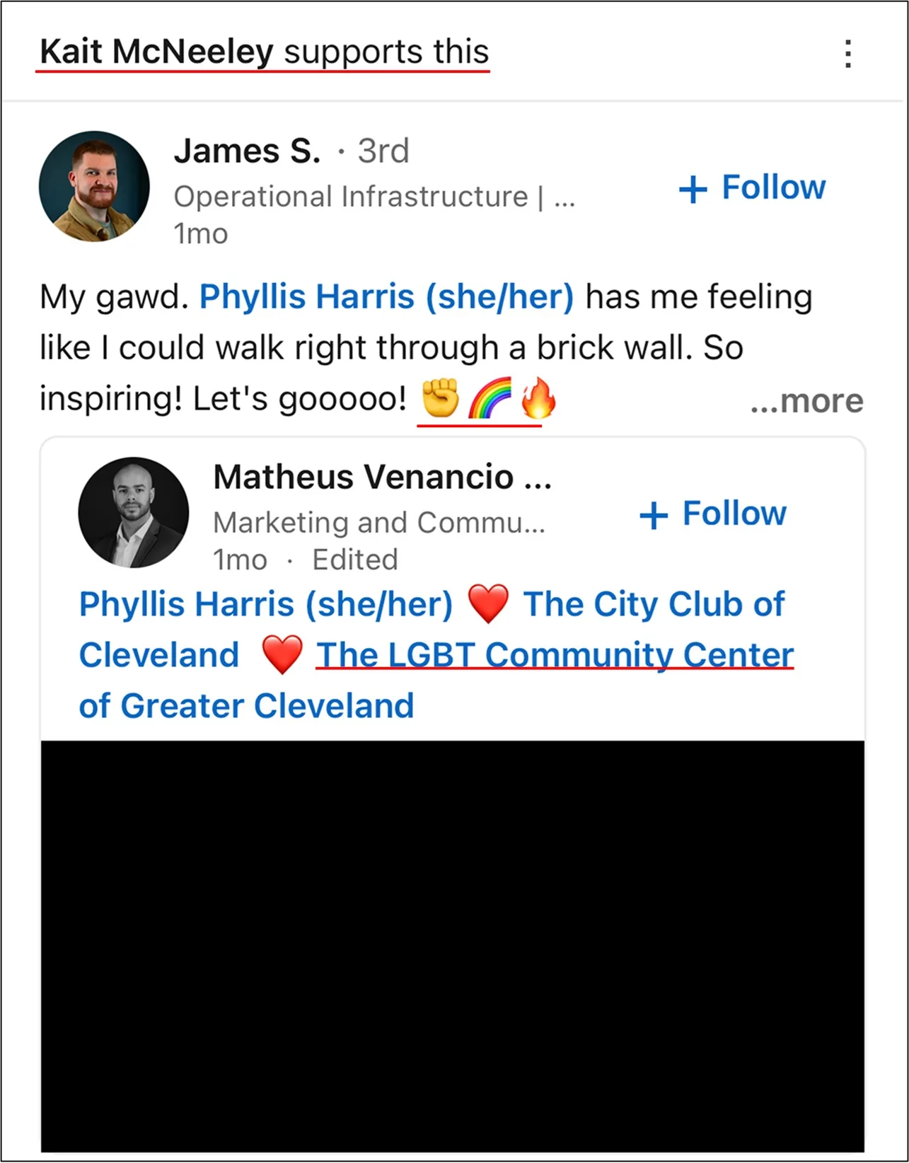 Within the last month, McNeeley liked or supported various pro-LGBT statements, such as the following.